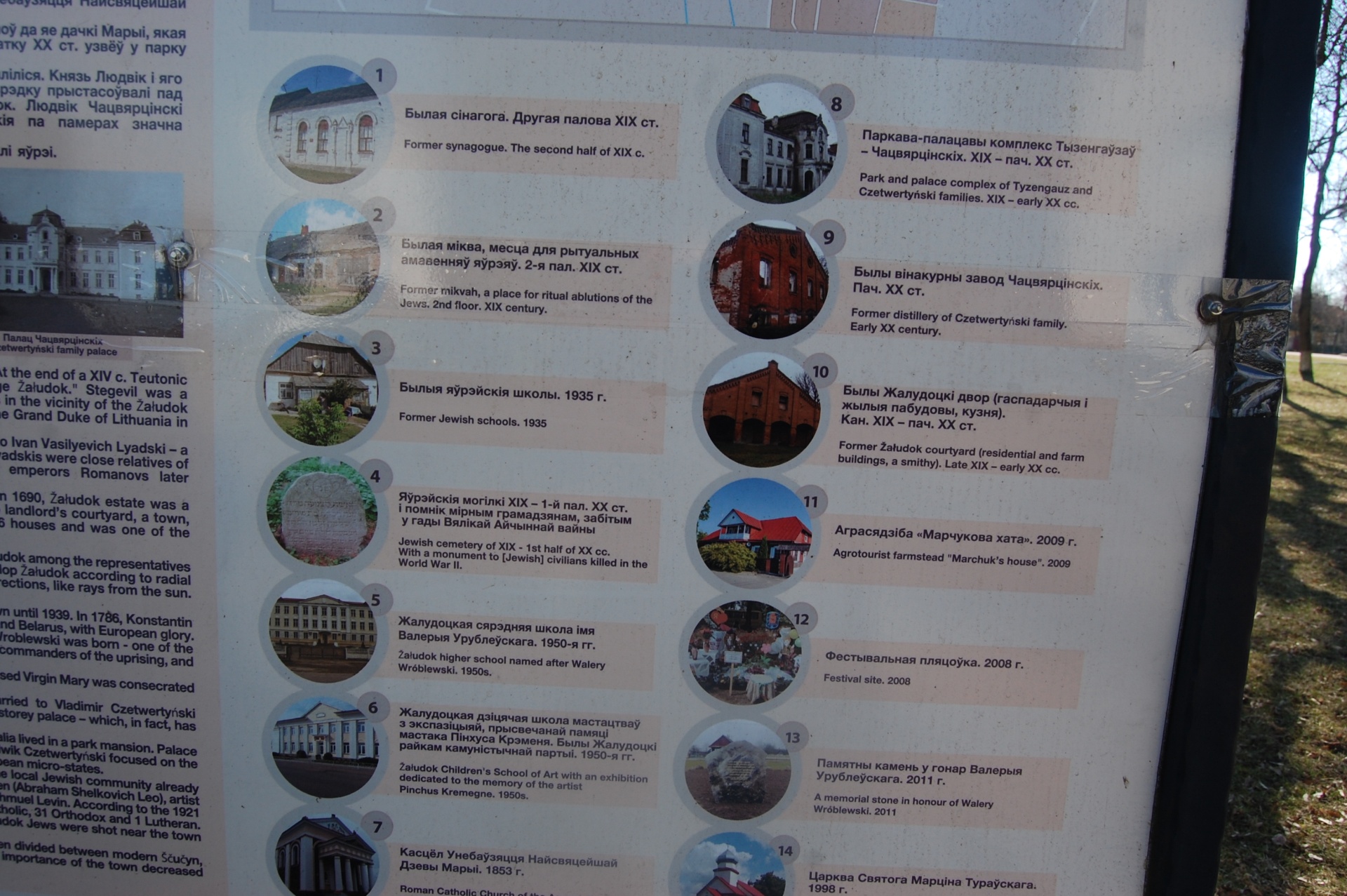 Все эти объекты были занесены на специальный стенд достопримечательностей Желудка, установленный в центре городского посёлка.