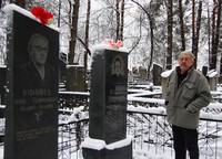 На фото: Сол Шульман у могилы мамы Нины Уфлянд на еврейском кладбище в Бобруйске, 2012 г.