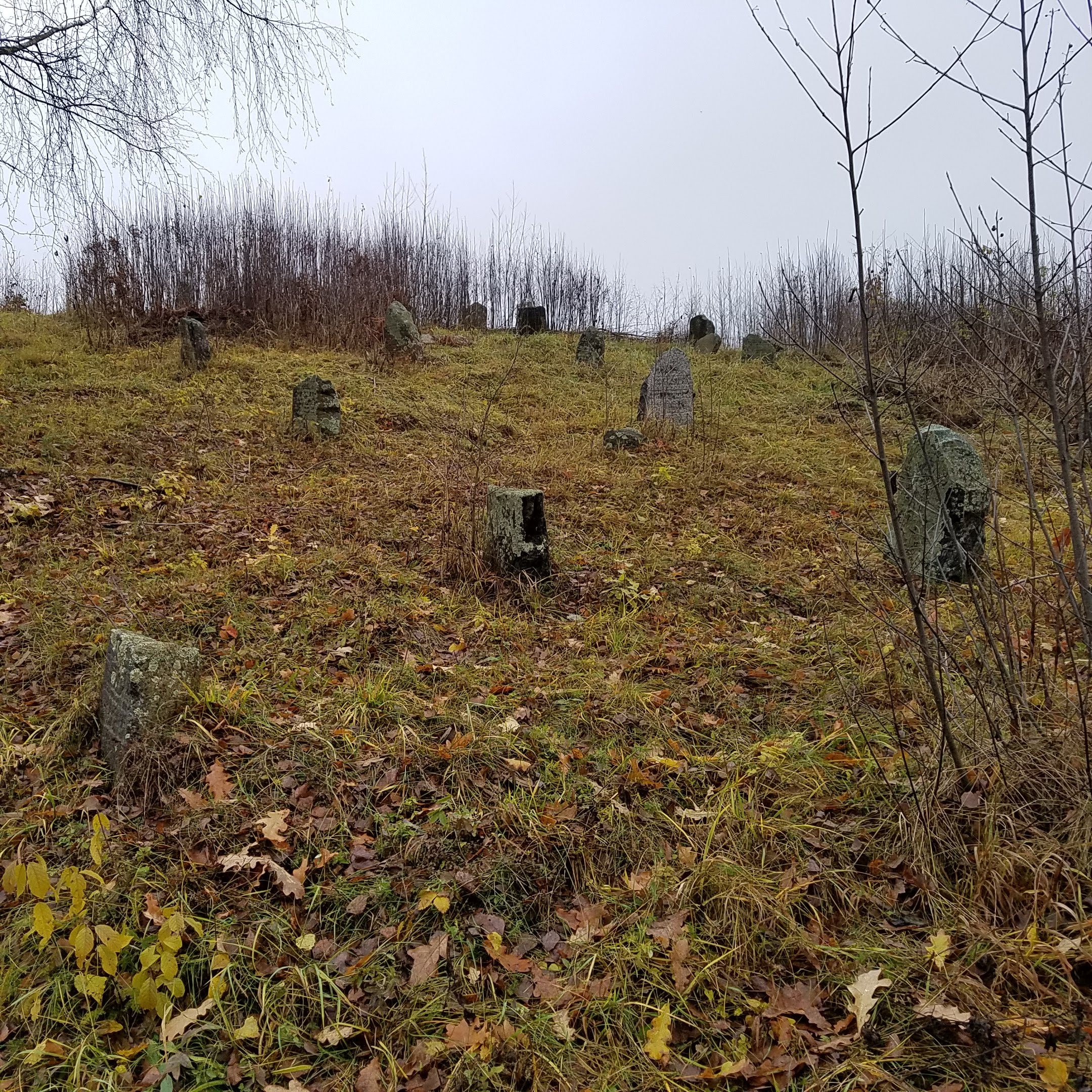 Улица Старо-Невельская (а ныне Галицкого) начинается от массового захоронения павших в битве за Городок, что через площадь от музея. Улица спускается к речке Горожанке и хлипкому мосту; по левой стороне улицы, за забором – никак не отмеченное месторасположение гетто 1941-го года. Там не было ни жилья, ни пищи, а просто склон под открытым небом, где стариков, женщин и детей продержали короткое время до расстрела (мужчины были расстреляны раньше в Берёзовке). Перейдя через мостик, мы с Марком поворачиваем налево на Зелёную улицу, через канавку, мимо родника и на холмик; главная калитка кладбища располагается справа от дороги после того, как Зелёная улица отходит от речки Горожанки и пересекает ручеек, а задний въезд на кладбище – от прудика со стороны 3-го Галицкого переулка. Вид кладбища одновременно завораживающий и печальный. Нестройные ряды тёмных замшелых мацев, покосившихся вправо и влево, маршируют на холм и исчезают в зарослях молодого непролазного леса. Многие камни напрочь скрыты под травой и мхом; десятки надгробий отколоты прямо над землей – их верхние части с надписями местные жители уволокли на стройки, а подземную часть камня им, видимо, суеверие не позволило брать. Делянки вырубок в лесу – это всё, что работникам Марка удалось отвоевать от быстрорастущего кустарника; большинство же территории остаётся густо заросшей. Согласно записям Тревора Бедемана и Майка Глейзера, вдохновившим в своё время (в 2009-м году) Марка Кривичкина на расчистку старой части кладбища, основные ряды мацев у калитки у Зелёной улицы датируются 1890-ми годами, и это самые новые захоронения в этой секции. Чем дальше от Зелёной улицы, тем старее становятся могилы; близ прудика это уже 1700-е годы захоронений. Когда место на этой части кладбища закончилось, то новые захоронения стали делать по гребню холма к западу от старой части кладбища, по другую сторону от дороги, соединяющей въезды на кладбище; весь ХХ век – там, и направление освоения новых участков в новой секции противоположное, с юга на север, так что более новые могилы, как правило, дальше от Зелёной улицы. Здесь мы подходим к могилам последних десятилетий, и Марк оживляется: этих людей он знал лично. Кто был отличный маляр, кто стекольщик, кто учил в школе; чья семья уехала в Израиль, чья в Германию, чья в Штаты. Попадаются здесь и Пруссы из дальних родственников, например, Этя Айзиковна Сорочкина, урождённая Прусс.