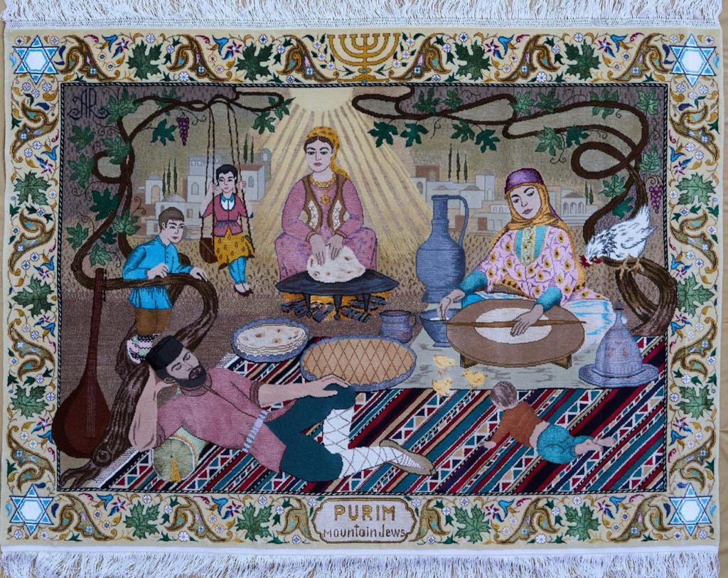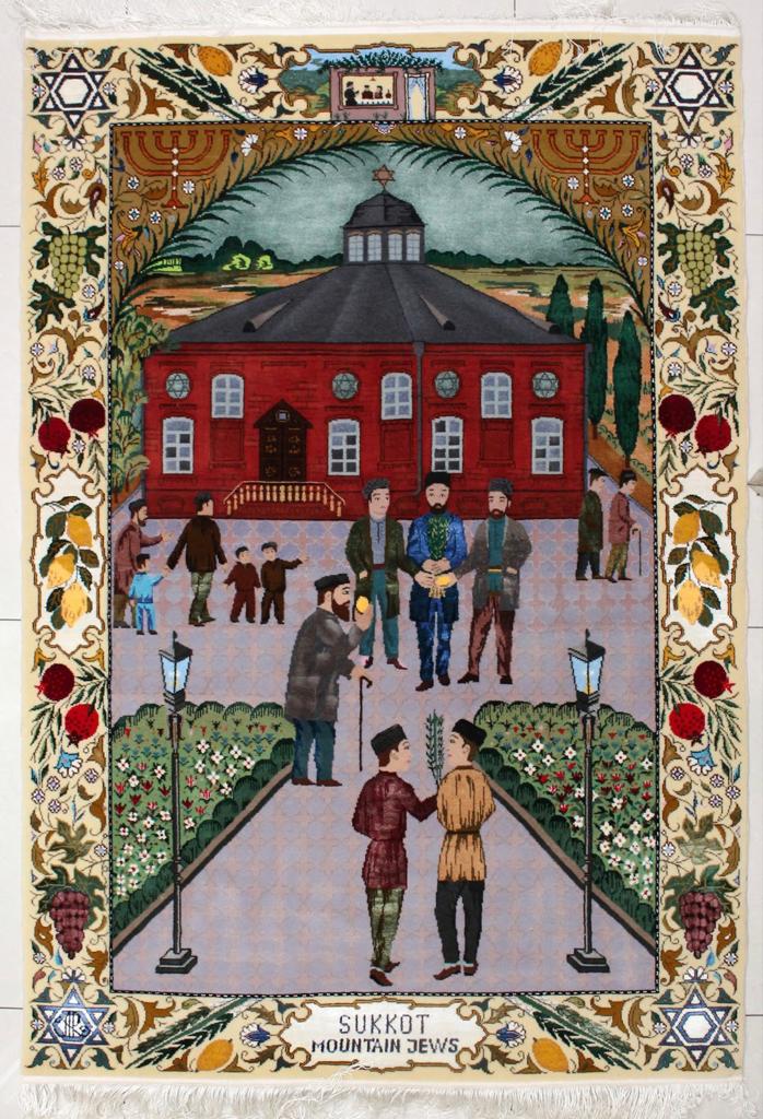 Ковры ручной работы, созданные по эскизам картин нашего героя – не просто предмет интерьера, а национальные произведения искусства, ценнейшая часть горско-еврейской культуры, когда орнаментальные узоры Азербайджана соединяются с духовными кодами горских евреев. Каждая деталь ковра символизирует важные события, праздники и обычаи горских евреев, будь то Пурим, Йом-Киппур, Песах, Рош ха-Шана. Каждый элемент ковра – символ, каждый ритм – память предков. Орнаменты и узоры ковров выполнены с особым уважением к традиционным формам, позволяя зрителю с огромным интересом погружаться в историческое прошлое горских евреев – выходцев из Азербайджана. Этническая принадлежность автора нaглядно передана в ковровых узорах, в сюжетах рисунков, в цветовой гамме его осязаемых творений, в формах и декоративных элементах, подчёркивающих специфику обычaев и трaдиций местных евреев.