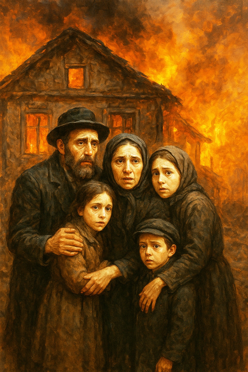Картина "После погрома" создана с помощью искусственного интеллекта.