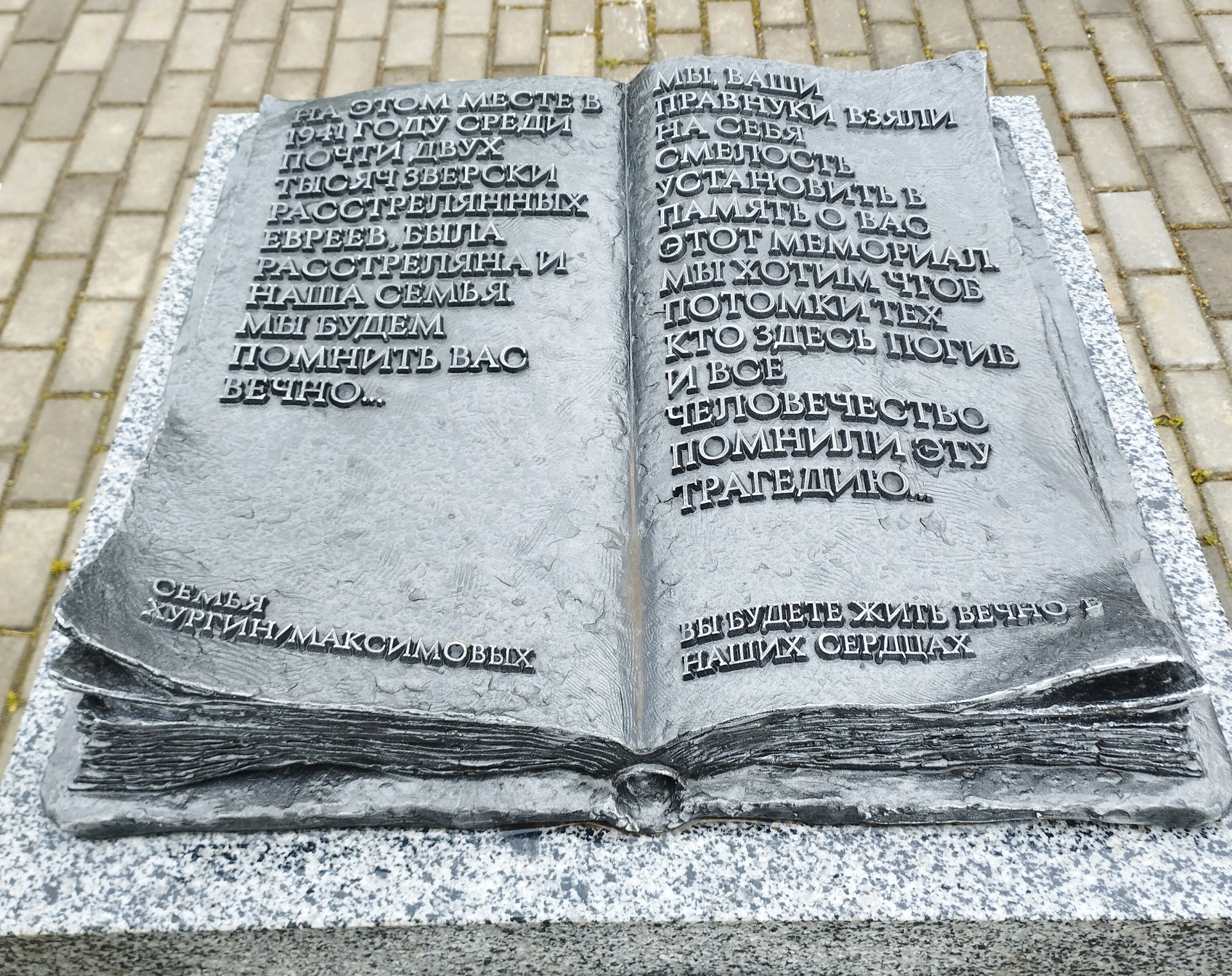 На страницах символической книги, находящейся у входа в Мемориал, написано: «На этом месте в 1941 году среди почти двух тысяч зверски расстрелянных евреев, была расстреляна и наша семья. Мы будем помнить о Вас вечно…