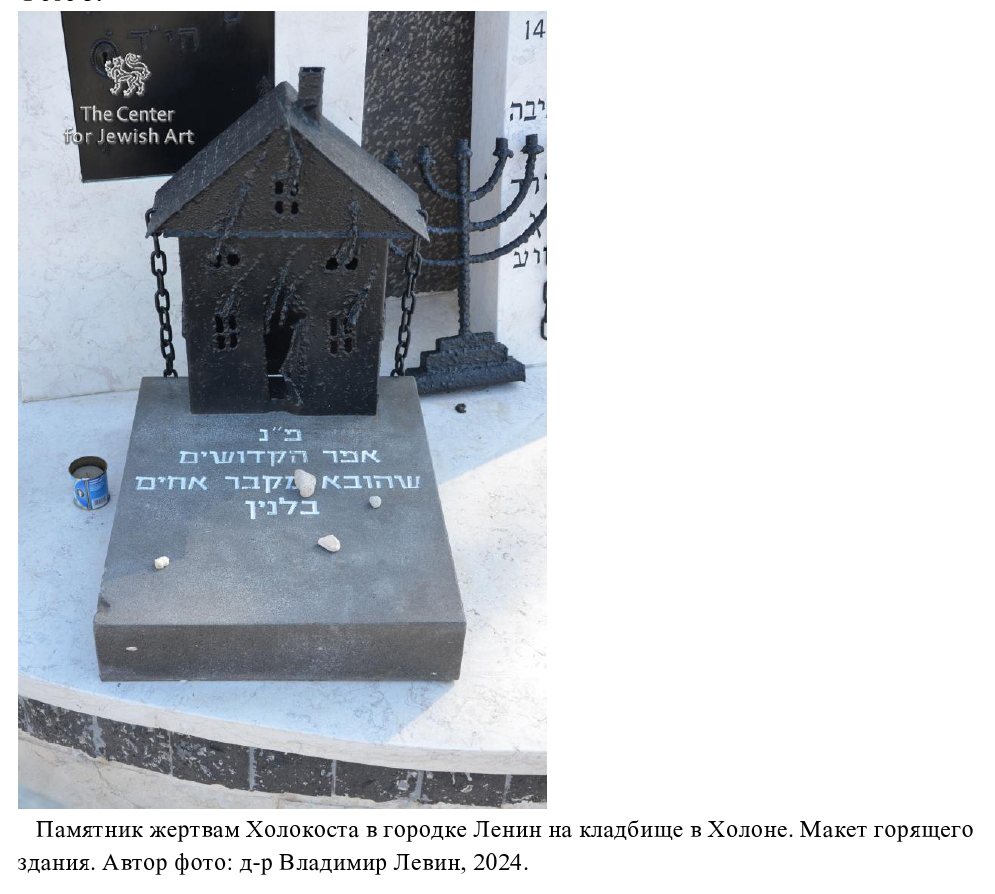 Память о трагедии евреев на белорусской земле жива и в Израиле. Одной из форм мемориализации стало установление на кладбищах памятников, посвящённых уничтоженным на территории Беларуси еврейским общинам. Эти монументы – часть более широкого явления, возникшего в первые годы после окончания Второй мировой войны не только в Израиле, но и во Франции и США. В его основе лежит желание посетить могилу убитых родных и близких и обрести возможность почтить их память в соответствии с еврейской традицией.