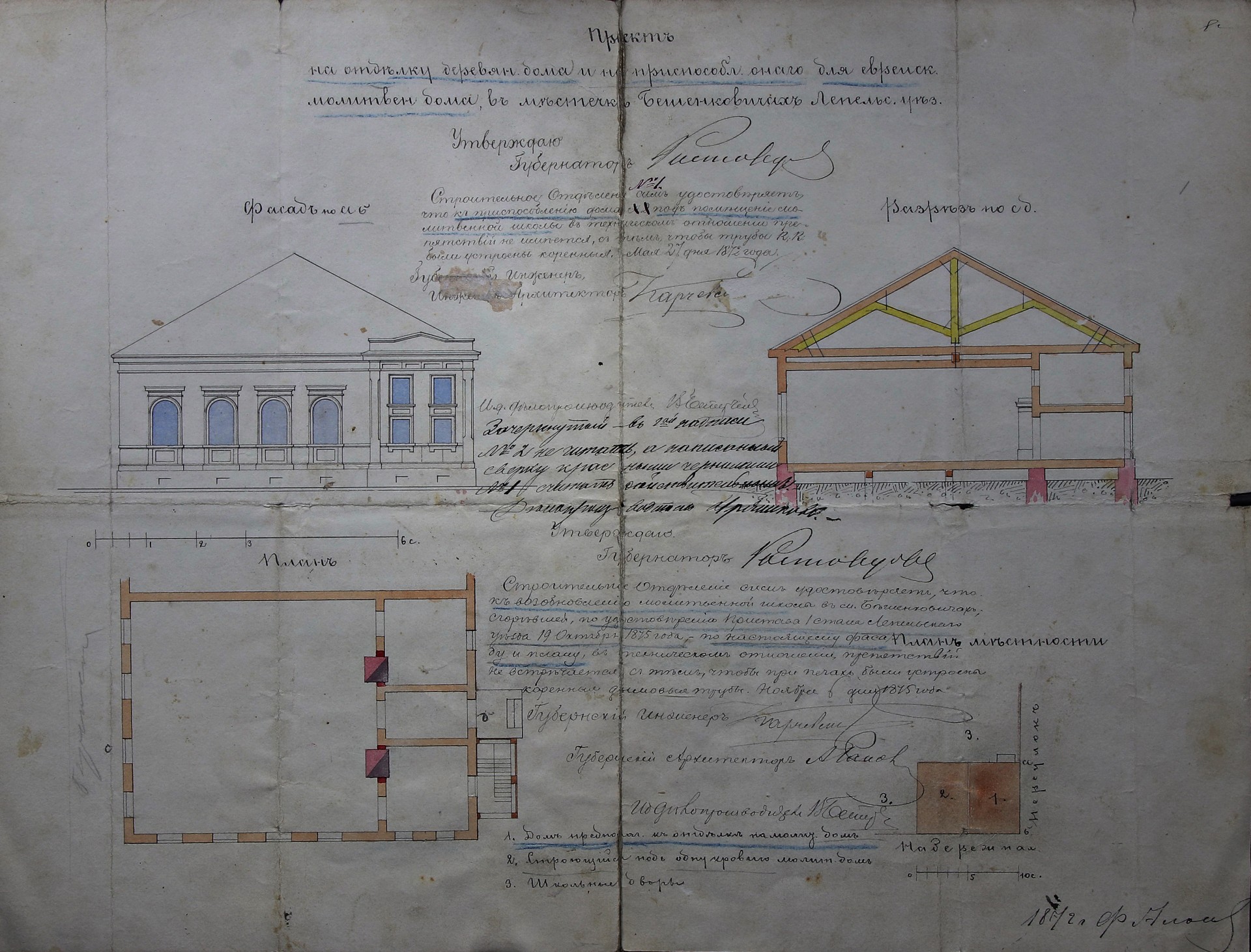 31 декабря 1876 г. здание осмотрела полиция, сверила его с планом, и в тот же день пристав 1 стана Лепельского уезда вручил старосте общины Шолому-Шлёме Шендеровичу Дрозину свидетельство о том, что дом построен правильно.