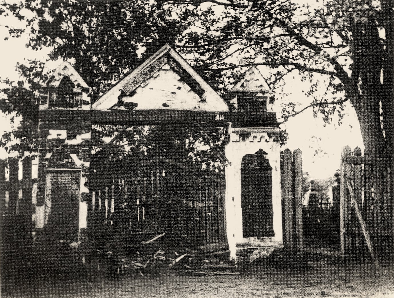 Интересно, что эти ворота не обошёл своим вниманием и один из витебских фотографов; те же очертания кирпичных столбов, то же самое дерево растёт справа от ворот. Таким образом, получается, что время от времени Марк Шагал писал реалистические картины.