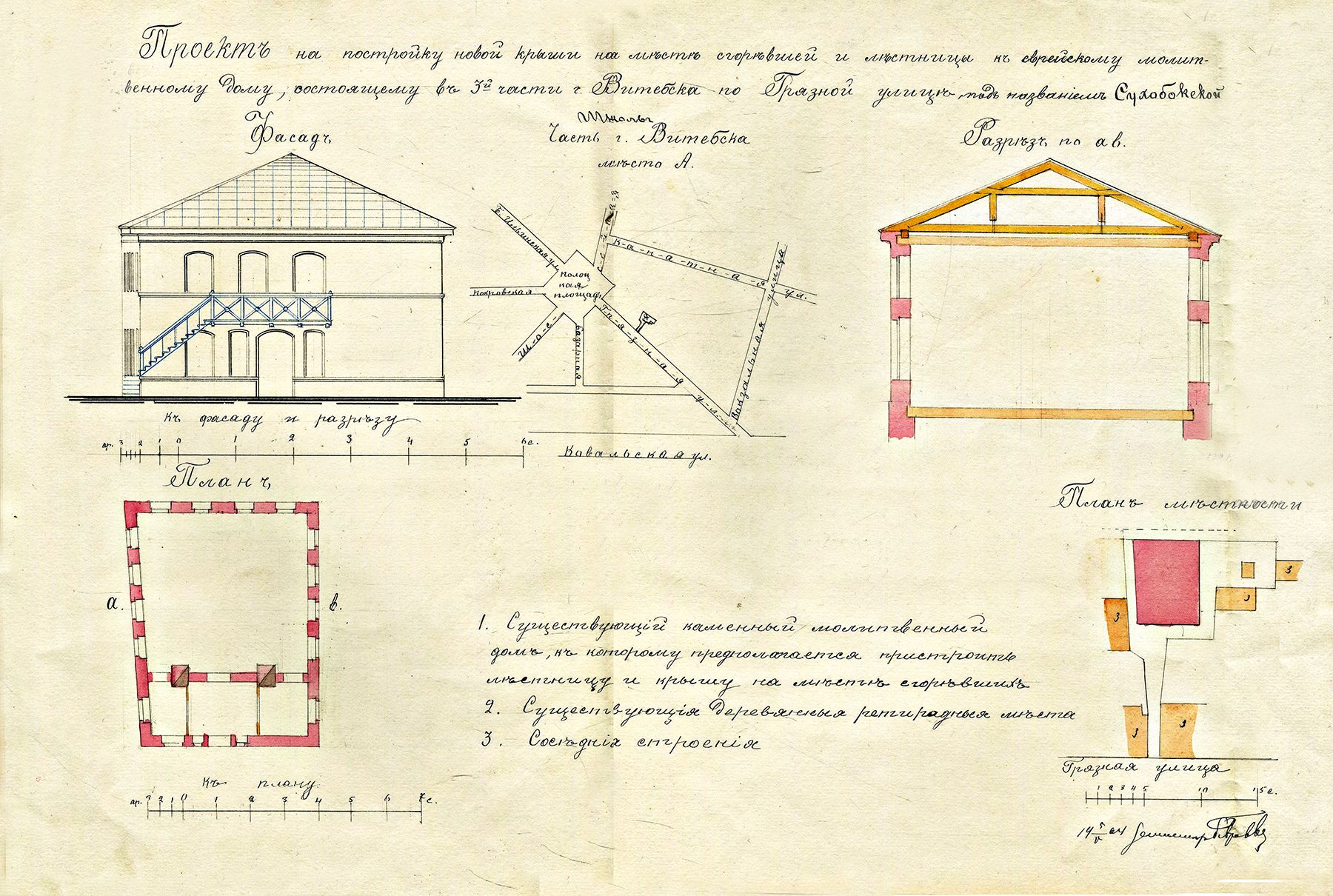 Тогда в Витебское губернское правление обратился староста молитвенного дома – Довид Залманович Немчёнок. К маю 1904 г. были готовы все необходимые чертежи, которые он и направил губернатору.
