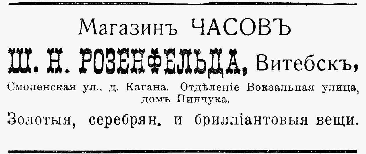 Но излишняя осторожность преступников порой позволяла без особых усилий избежать ограбления. Такой случай произошел 16 октября 1917 г. на квартире тестя Марка Шагала Шмуйлы-Неуха Розенфельда. Квартира Розенфельдов находилась в самом центре города на оживлённой улице и, вероятно, это обстоятельство заставило понервничать нежданных гостей: «Вчера, в 8 ч. веч., после закрытия магазина, было произведено вооружённое нападение на квартиру владельца ювелирного магазина Розенфельда, помещающейся вместе с магазином по Смоленской ул. 3 лиц, вооружённых револьверами, проникли в квартиру и крикнули: «Руки вверх!». Но в это время в квартиру кто-то вошёл с улицы. Грабители, очевидно предполагая, что это милиция моментально скрылись. По телефону была вызвана милиция из 1-го уч.; однако грабителей и след простыл» («Витебский листок», 17 октября 1917 г.).
