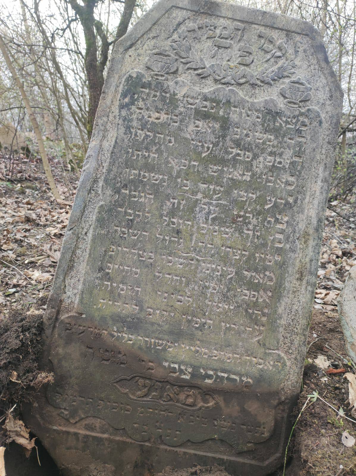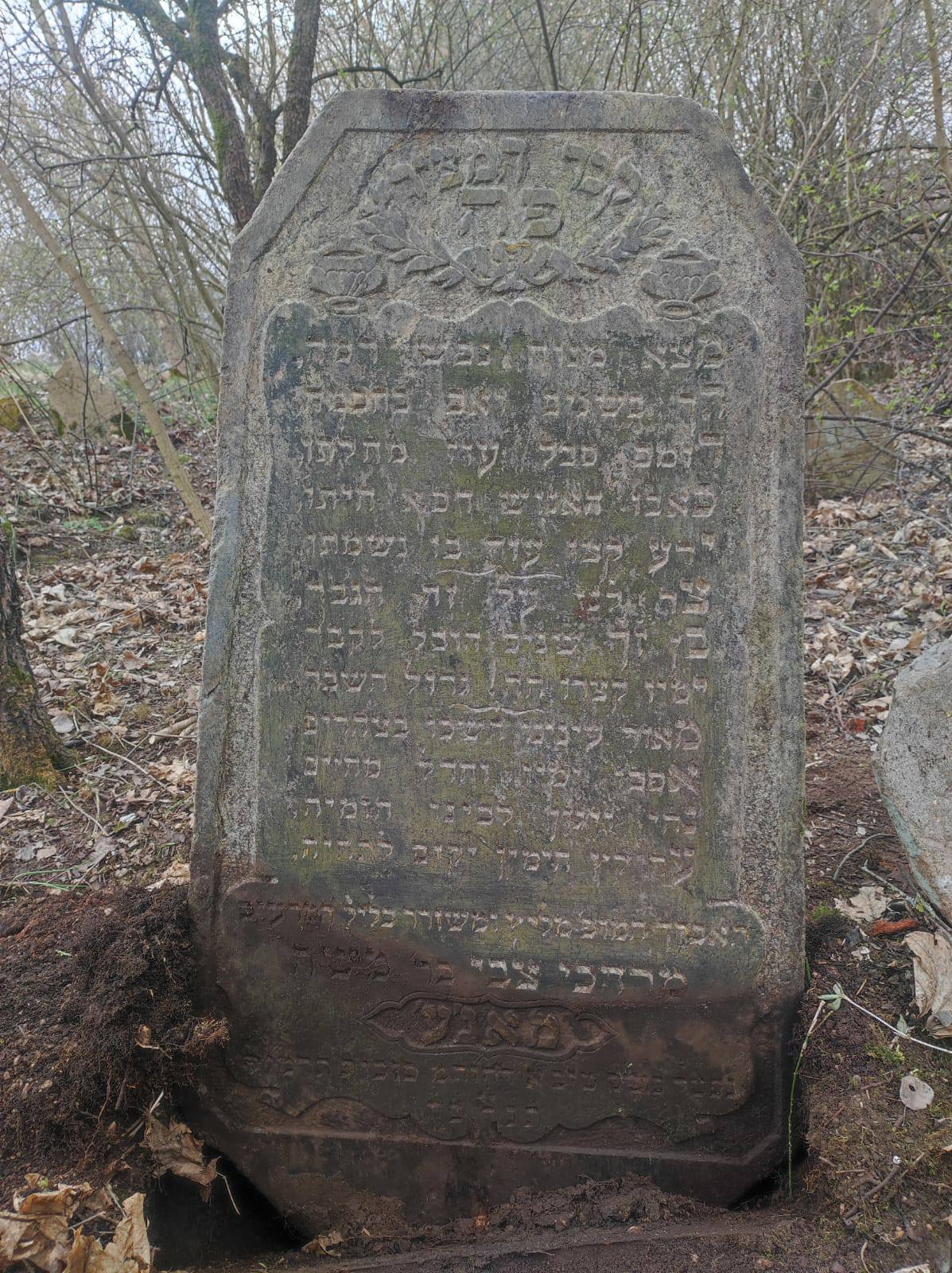 И вот буквально на днях благодаря стараниям волонтёров и лично Алексей Жаховец, который занимается очисткой и каталогизацией еврейского кладбища Городка Молодечненского района, который специально приехал в Радошковичи, была найдена надгробная плита (мацева) на месте захоронения Манэ.