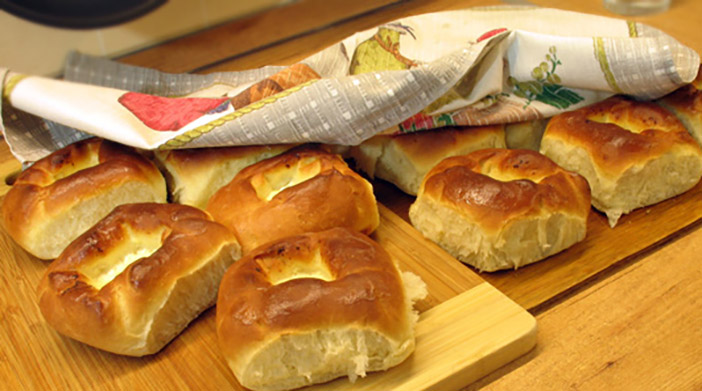 И после всех этих дел, бабушка приступала к раскатке теста. На наш большой кухонный стол она клала лист фанеры, который у нас хранился для этих дел в кладовке, завернутый в три слоя обоев. Развернув обои, бабушка долго мыла фанеру, и только потом разрешала мне посыпать её мукой. После того, как я делал своё дело, и превращался в настоящего поварёнка с ног до головы, выпачканного в муку, бабушка отправляла меня отряхиваться и мыться, а сама скалкой начинала раскатывать тесто. Превратив тесто в лист, толщиной в полпальца, она острым ножом резала его на одинаковые большие квадратики, величиной в половину листа из школьной тетрадки. В средину такого квадратика она клала творожную массу, и вторым квадратиком закрывала её, защипывая, получившийся бутерброд по краям. В верхнем квадратике бабушка пальцем делала в середине дырочку, сквозь которую с любопытством посматривал творог. Потом смазывала верх желтком яйца, и отправляла флодунчики, как я их ласково называл, на предварительно смазанный сливочным маслом противень. И противень отправлялся в печь.