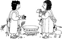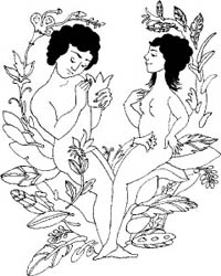 ЕВРЕЙСКАЯ МИФОЛОГИЯ Адам, Лилит и Ева Сперва всевышний сделал человека наподобие сиамских близнецов: Адам был неразрывно связан со своей женой Лилит. Супруги немедленно затеяли спор на тему: кто главнее? Так и не ответив на этот вопрос, они потом ссорились непрерывно. Целыми днями над землёй разносились вопли первых скандалистов. Поначалу это забавляло Бога, но потом стало раздражать. И он произвёл сложнейшую хирургическую операцию: разделил сладкую парочку. Едва Бог удалился, произошло нечто ужасное. Из чистого древнего воздуха в облике чудесного юноши материализовался сатана (по-гречески – дьявол). - Пойдем со мной, прекрасная Лилит! – сказал сатана. – Я научу тебя развлекаться. Лилит влюбилась в него с первого взгляда и заявила: - Прощай, зануда Адам! Наконец-то я заживу так, как мне хочется! Сатана коснулся Лилит пальцем и вложил в неё умение летать. С широко открытым ртом смотрел Адам, как жена его растворяется в голубом небе. Узнав о безобразии, Бог отрядил за беглянкой в погоню трёх лучших ангелов. Они настигли её уже над Красным морем и стали уговаривать вернуться к мужу. Сатана благоразумно куда-то скрылся. - Подите прочь, крылатые бездельники! – завизжала Лилит так, что на земле бросились врассыпную мамонты. – Не хочу быть хорошей, хочу быть дьяволицей! И упорхнула. Адам же остался в райском саду в большой тоске. Хотя скандалы с Лилит давно ему надоели, но оказалось, что одиночество ещё хуже. Бродил он среди деревьев год, бродил другой и однажды мечтательно вздохнул: - Эх, перенестись бы мне сейчас туда, где находится жена моя, Лилит! Тут же явился пред ним сатана, подхватил и унёс в свой дворец. - Она, правда, уже не твоя, а моя жена, – доверительно шепнул сатана. – Но я ничего не имею против того, чтобы она вернулась к тебе. Если только она захочет. Прибыв на место, Адам убедился, что его Лилит времени зря не теряла: она нарожала сатане целую стаю чертей, и среди них даже Ангро-Майнью – дьявола иранских мифов. Были среди этих деток и демоницы потрясающей красоты, которые тут же принялись кружить вокруг Адама и говорить ему комплименты. Чистого и непорочного Адама словно подменили. Целые днями шлялся он по сатанинскому дворцу в обнимку со своими подружками-демоницами. Подружки тоже с удовольствием рожали Адаму демонят. В конце концов Лилит приревновала мужа и вернулась в семью. Но она была уже законченной ведьмой и могла производить на свет только бесов. Так появился на свет целый выводок демонят, которых назвали Шедим. Лилит уже не суждено было встать на путь истинный – она и в наши дни резвится в сатанинских чертогах. Адама же, когда ему исполнилось 130 лет, Бог призвал к себе и женил на Еве: - Вот тебе новая, нормальная жена взамен этой красивой ведьмы… Напоследок Бог строго-настрого предупредил парочку, чтобы не ели плодов от дерева познания добра и зла, которое растёт посреди сада. Но сатана не угомонился. Этот наглец под видом змея явился ко второй жене нашего общего предка и предложил отведать плод с запретного дерева. До сих пор мудрецы спорят, с какого именно – яблони, граната, инжира, апельсина, айвы или груши. Ева протянула руку, поднесла плод к губам, откусила… Так произошло грехопадение. Бог, конечно, сразу же узнал об этом, страшно рассердился, отобрал у Адама с Евой бессмертие и выгнал их из рая: обрёк на тяжкий труд ради куск