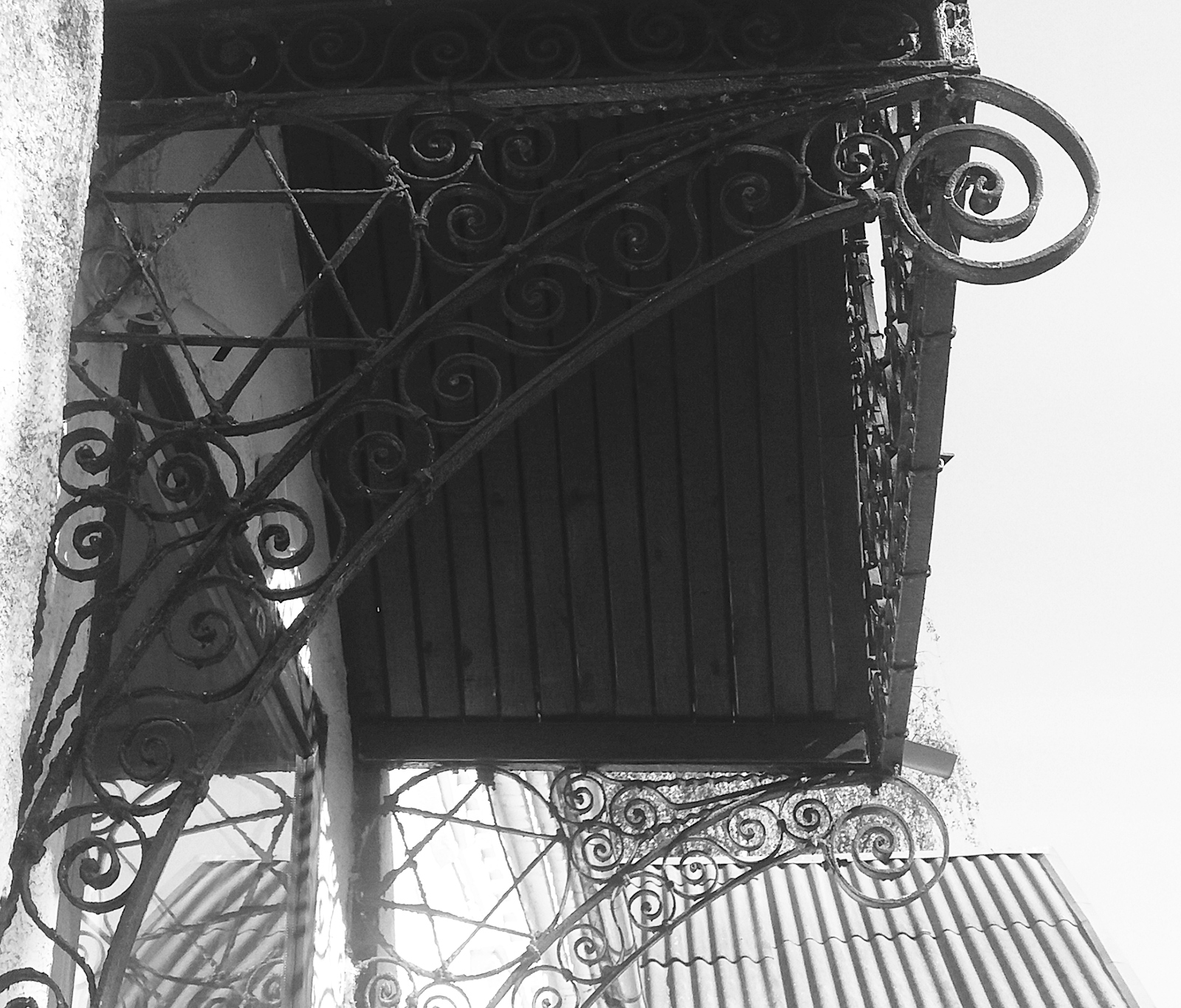 Мы подходим к парадному подъезду. Эдуард продолжает рассказ и обращает моё внимание на металлический козырёк над дверями.