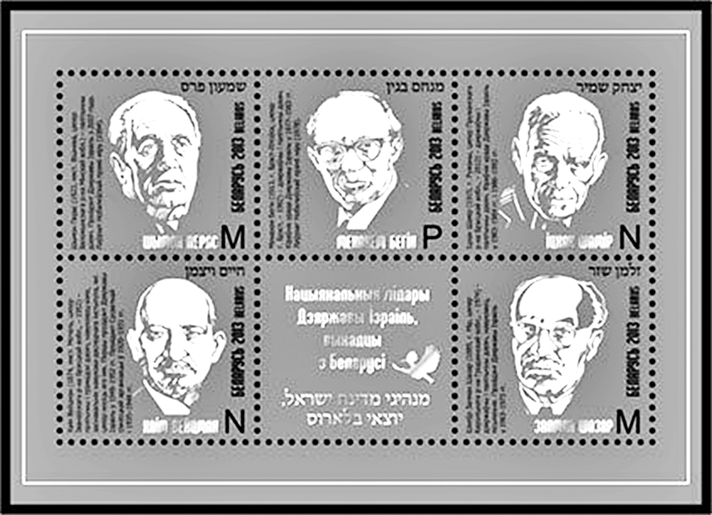 30 октября 2013 года Министерство связи и информатизации Республики Беларусь ввело в обращение почтовый блок из 5 марок и купона «Национальные лидеры Государства Израиль – выходцы из Беларуси».