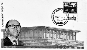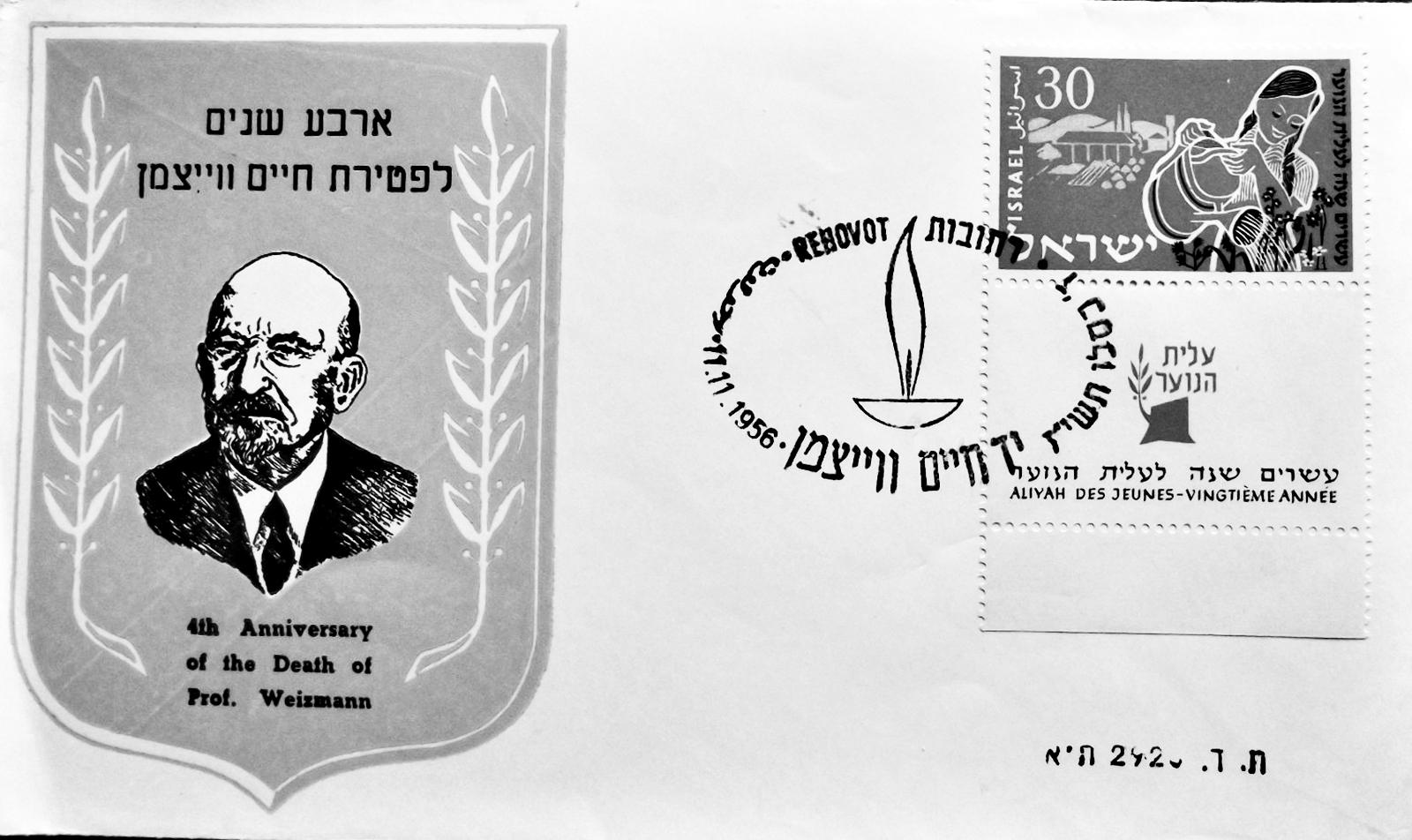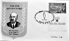 Первому президенту Израиля посвящён конверт с оригинальной маркой, выпущенный израильской почтой. Фото принесения присяги первым президентом Государства Израиль воспроизведено на конверте первого дня, выпущенного к пятидесятилетию Кнессета.