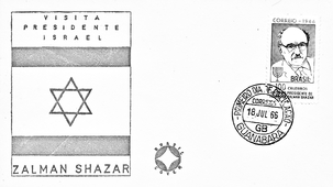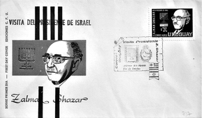 В июне 1966 года Шазар совершил первый государственный визит в Латинскую Америку. Он посетил Уругвай, Бразилию, Чили. Почта Уругвая выпустила по случаю визита израильского президента авиамарку, конверт и специальный штемпель. Марку и конверт выпустила и почта Бразилии.