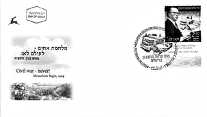 В день выпуска почтового блока в обращение в отделении почтовой связи № 10 Бреста проводилось специальное гашение на конверте «Первый день». На штемпеле изображён удод и надпись на белорусском языке «Национальные лидеры Государства Израиль – выходцы из Беларуси». Если смысл надписи понятен, то появление на штемпеле изображения удода требует пояснений. В мае 2008 года, в связи с 60-летием Израиля, по инициативе Министерства экологии были объявлены выборы национальной птицы этого государства. В результате голосования, в котором могли принять участие все жители страны, был выбран удод — более 35 % высказались в пользу этой птицы.