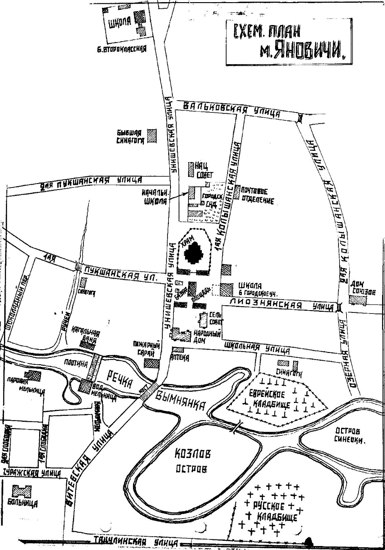 Далеко не всегда по внешнему виду можно распознать старое еврейское здание, ведь даже молитвенные школы не всегда выдают себя своим видом, но если внутри здания сохранился бассейн, то это наверняка бывшая еврейская баня. Была таковая и у евреев местечка Яновичи Витебского уезда – находилась она практически в центре местечка, на Школьной улице. С одной стороны бани была Базарная площадь, а с другой, в сторону речки Вымнянки, еврейское кладбище.