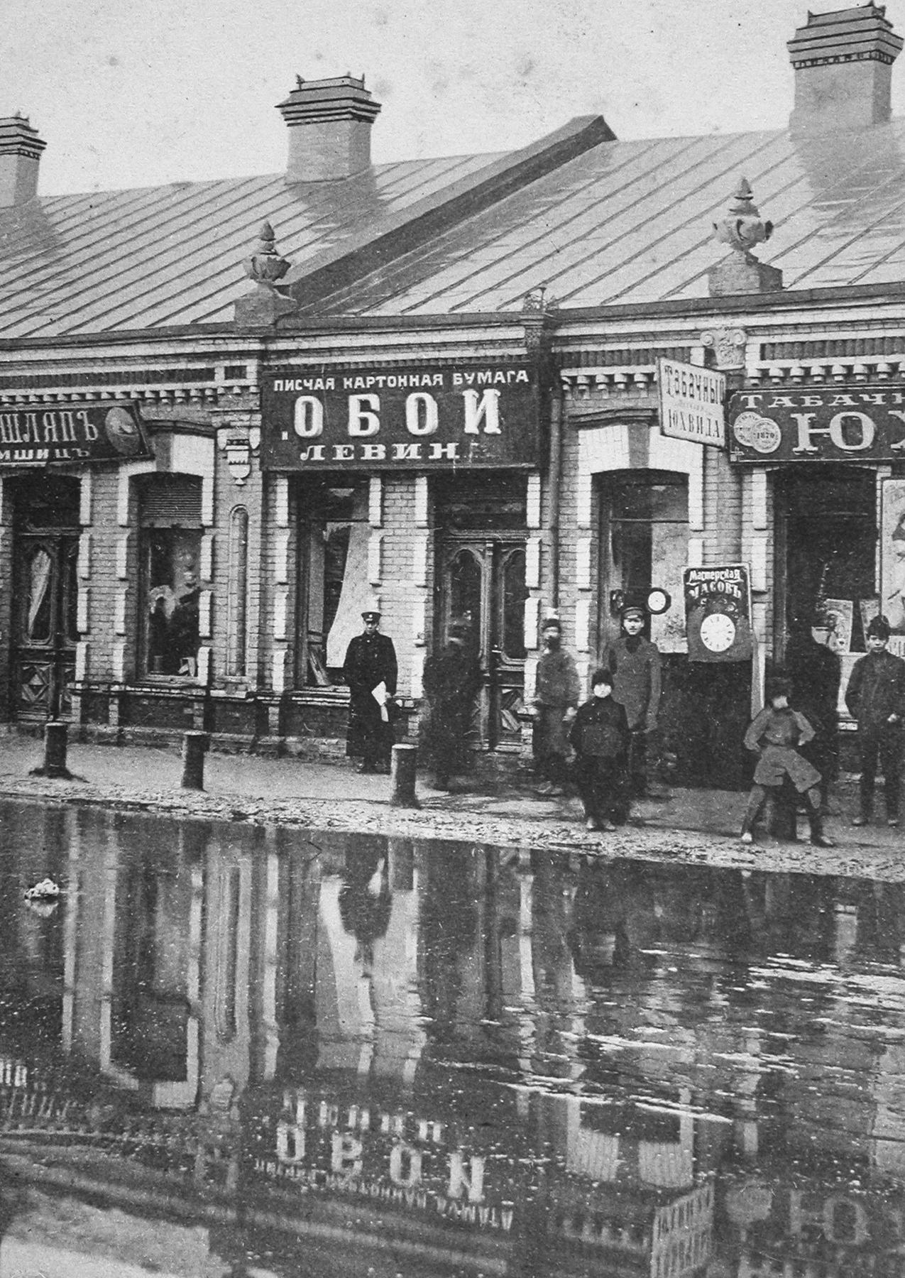 Часть помещений дома купец Фейгин сдавал в аренду. Тут размещались разные торговые объекты. На фотографии дома начала ХХ века можно прочитать надпись «Писчая картонная бумага. Обои» над дверями магазина Ханы Азиковой Левиной. По соседству расположилась мастерская шляп Хаи Ицковны Дымшиц. Хаим Берков Юхвид арендовал у Фейгина помещение для торговли табаком и папиросами (вывеска «Табачный магазин Юхвида»).