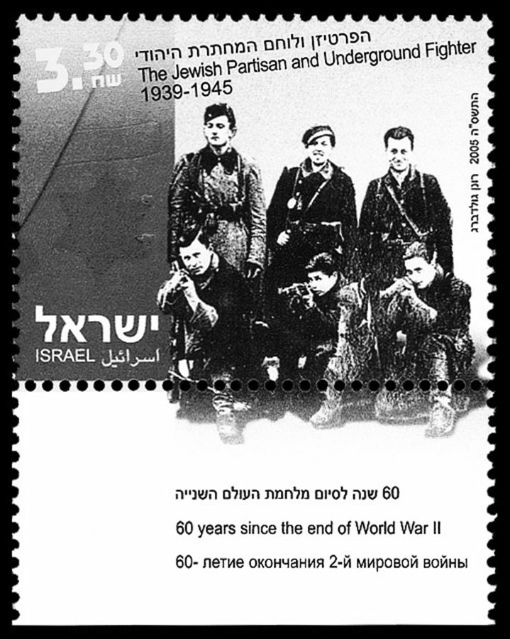 Одна из марок была посвящена еврейским партизанам Второй мировой войны. На марке изображён фрагмент фотографии группы партизан из еврейского отряда братьев Бельских.