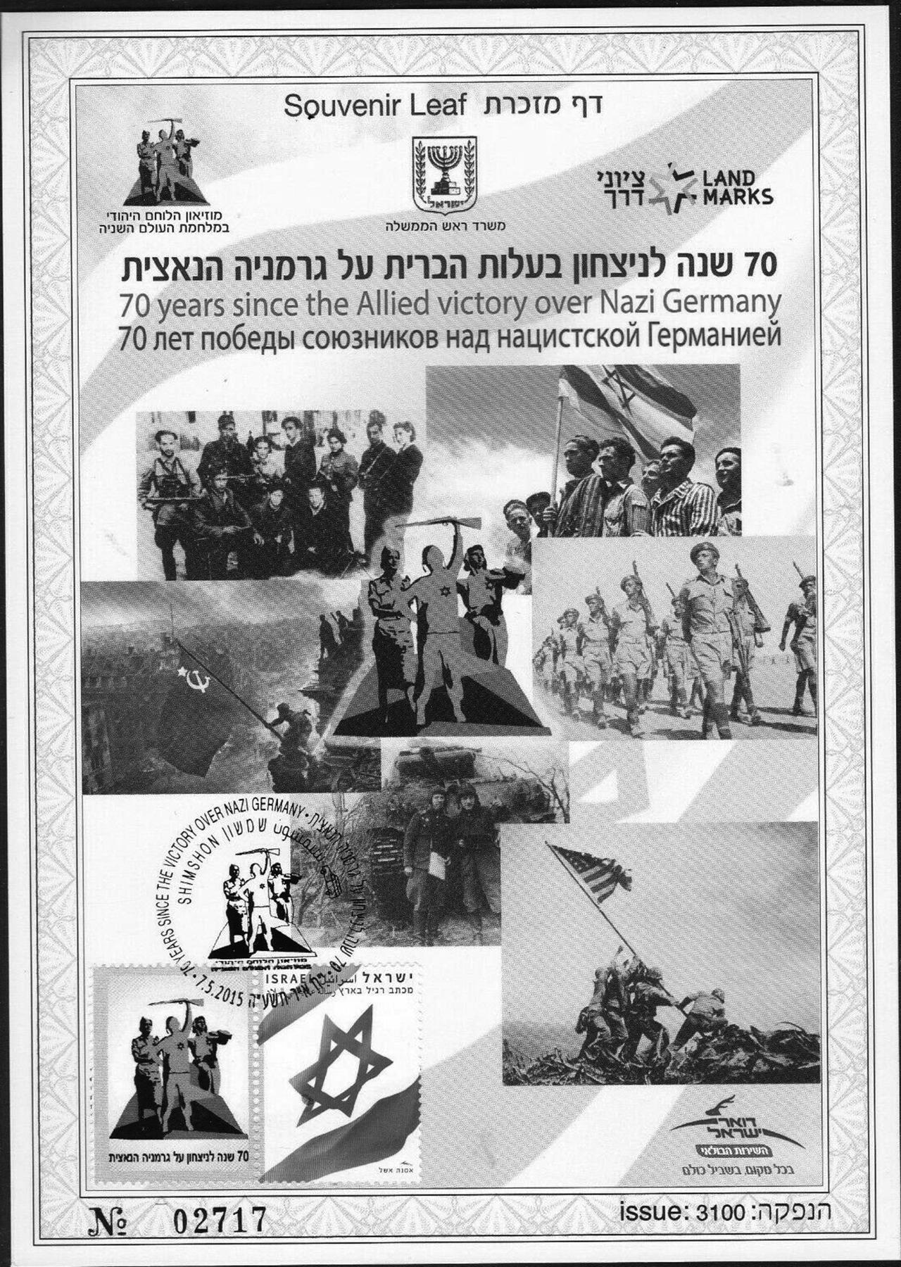 После 1985 года почтовое ведомство Израиля каждые 10 лет отмечало юбилей Победы над гитлеровской Германией. В 1995 году в ознаменование 50-летия Победы вышли марка и блок, посвящённые юбилею победы во Второй мировой войне. 8 мая они гасились специальным памятным штемпелем.