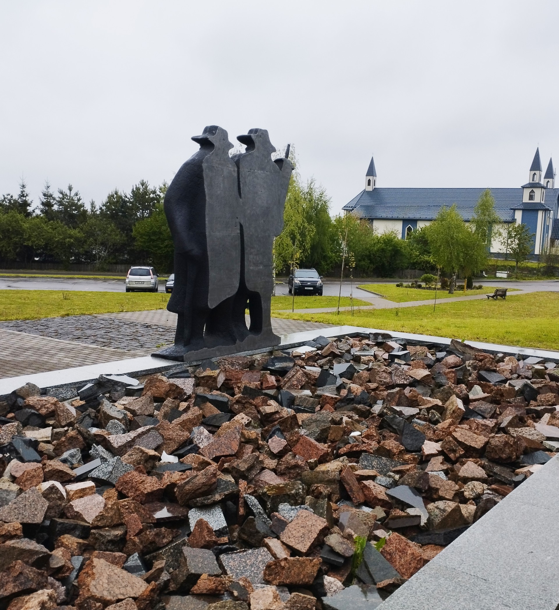 Я приехал к Мемориалу расстрелянным в годы Холокоста евреям Дзержинска вместе с авторами проекта архитекторами Галиной Левиной и Александром Копыловым. Со скульптором Александром Шаппо они создали в 2022 году этот комплекс Памяти.