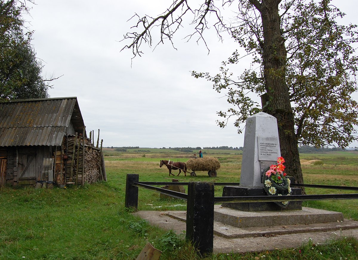 В пятидесяти метрах от еврейского захоронения фашисты расстреливали партизан. На их могиле стоят два креста.