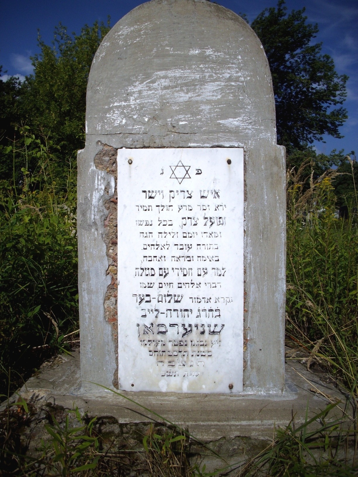 В годы Великой Отечественной войны на еврейском кладбище немцы устроили тир, упражняясь в стрельбе по надгробиям, многие из которых пострадали. Разбитым оказался и памятник Шолом-Дов-Бер Шнеерсону. В 1960 г. было установлено новое надгробье, и с тех пор сюда приходят жители и гости города. Они кладут у подножья мраморной плиты камешки – знаки вечности и молятся об исполнении простых человеческих желаний.
