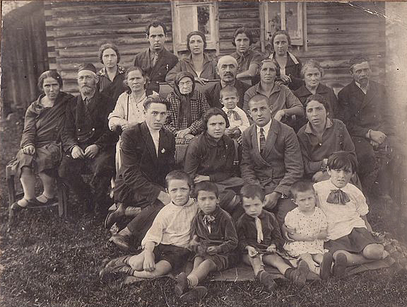 Эта фотография сделана летом 1930 на даче не далеко от Дубровно (Витебская область), куда съехалась почти вся семья. В центре – Лея Якобсон. На коленях у старшего сына Залмана, моего деда, мой двоюродный брат Яков, 1928 года рождения.