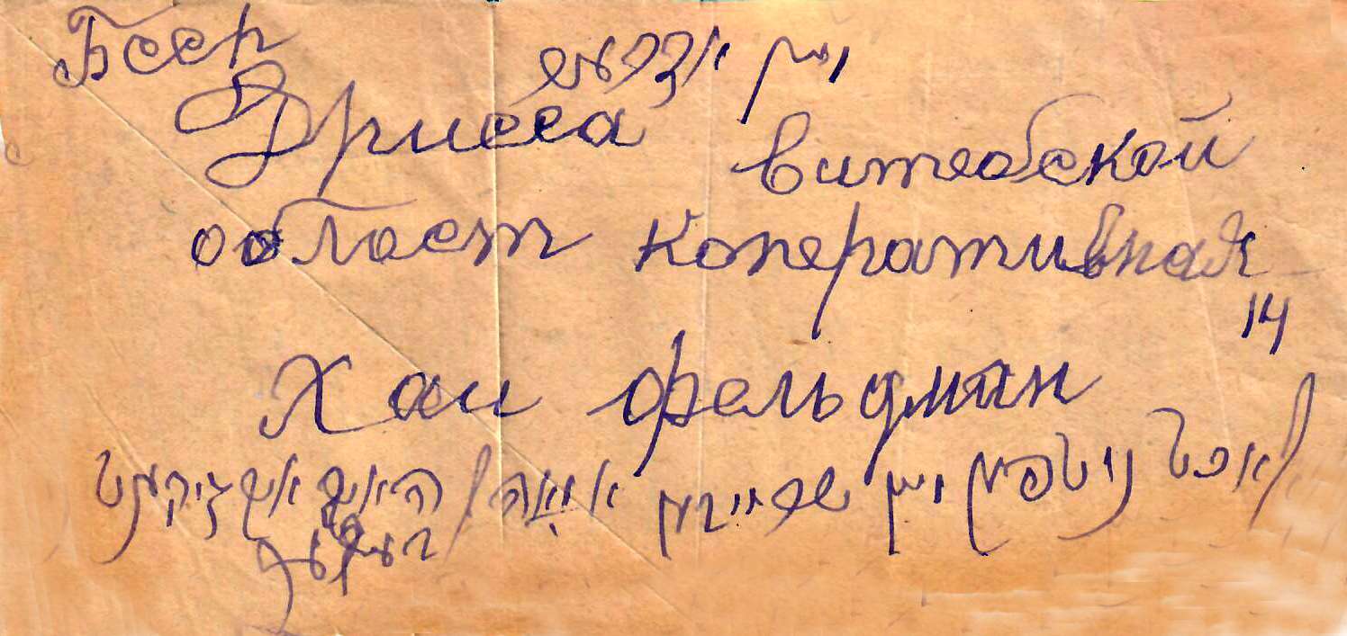На концерте есть обратный адрес: БССР, Витебская обл., Дрисса, ул. Кооперативная, дом, 14, Хае Фельдман.