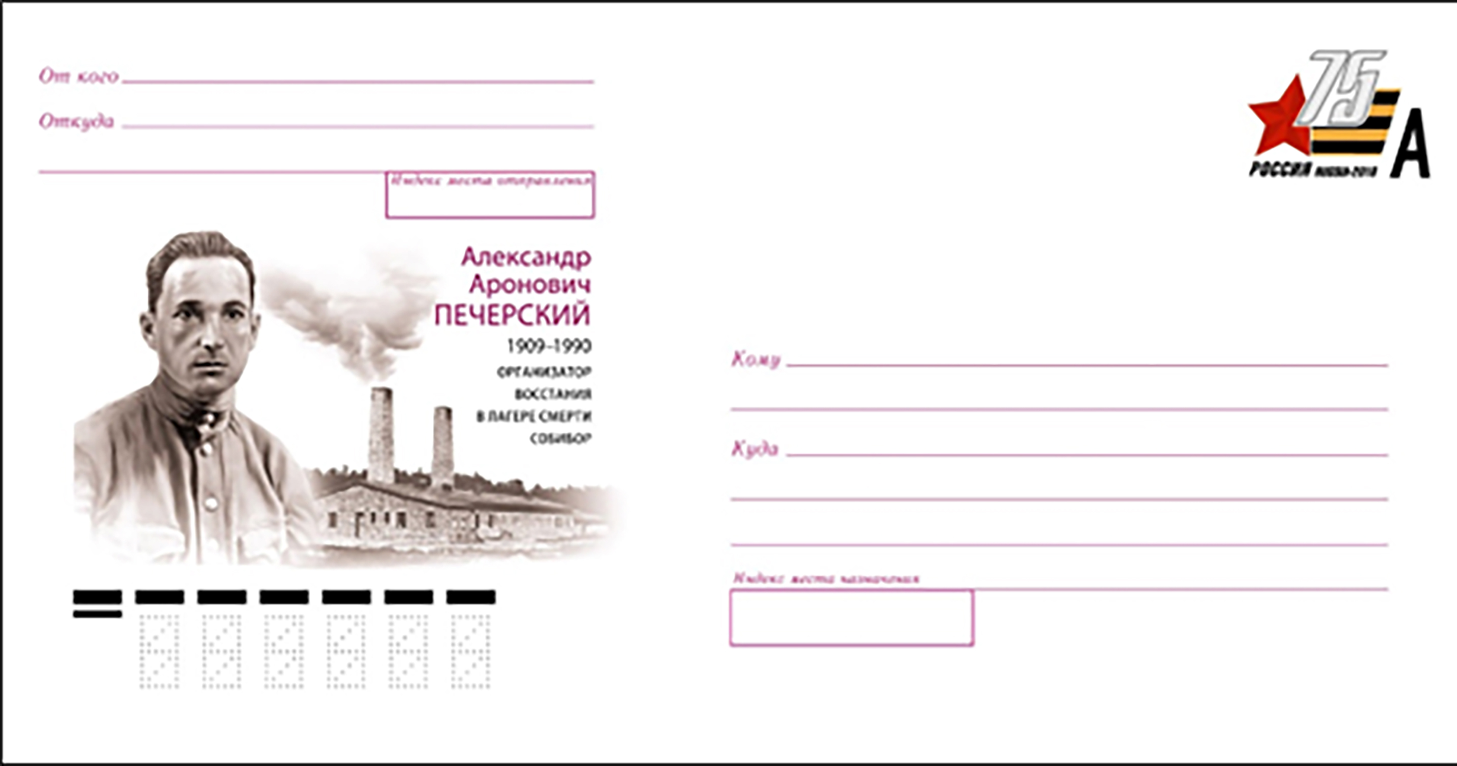 К дню выхода в свет этой марки был подготовлен конверт с портретом руководителя восстания Александра Ароновича Печорского. В преддверье празднования 75-летия победы над фашистской Германией и к 75-летию восстания в Собиборе был выпущен конверт с оригинальной маркой, на котором также воспроизводился портрет А. А. Печерского.