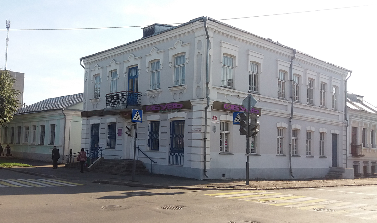Проходим ещё метров двести. Эдуард Злобин обращает моё внимание на дом, стоящий в глубине лужайки. Сейчас это кожвендиспансер. Исторически здесь был центр еврейской общинной жизни: размещались Талмуд-Тора (учебное заведение для мальчиков из малоимущих семей), Дом старца, еврейская больница. Здесь же была и синагога.