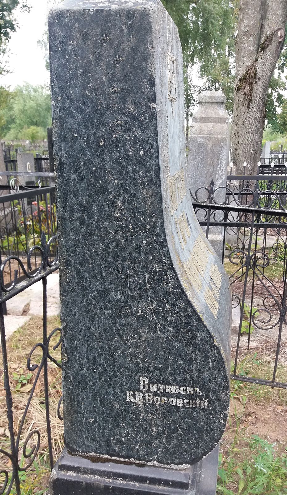 Удалось узнать фамилию одного из мастеров-каменотёсов, который делал эти мацевы – К.В. Боровский (фото 2). Его фамилия сохранилась на боковой грани одного из памятников. Мастеров-каменотёсов было гораздо больше, эта профессия, как правило, передавалась по наследству от отца к сыну, но время стёрло из памяти фамилии этих людей.