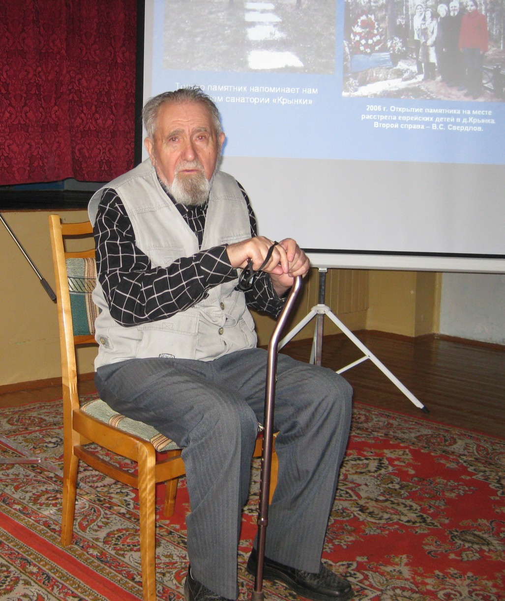 Лишь одному из почти 80 приговорённых к расстрелу еврейских детей удалось бежать. Это был Володя Свердлов, которому в то время исполнилось 12 лет.
