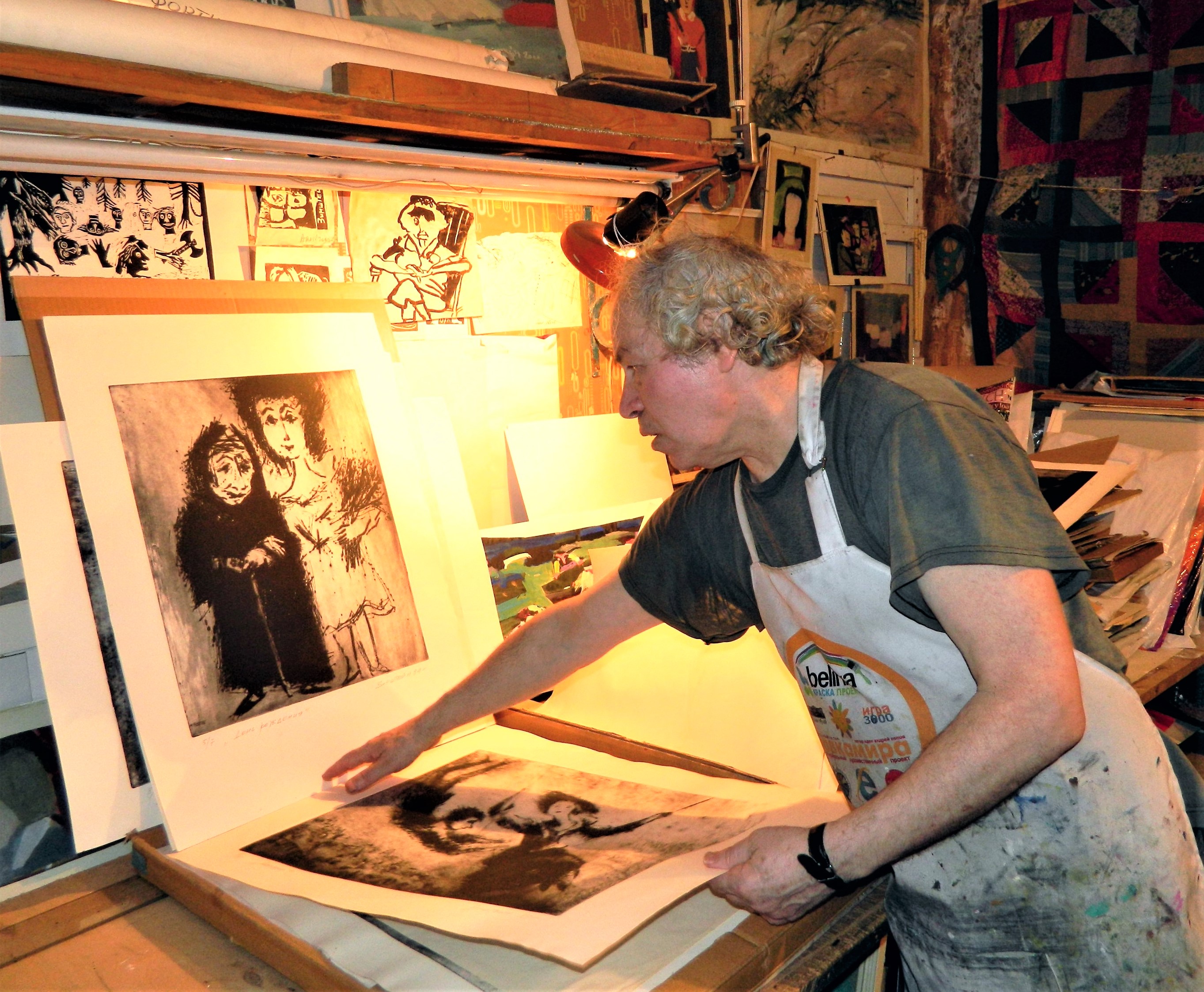– У меня есть серия гравюр «Семейный альбом». Техника «сухая игла». На металле, с последующей печатью. Эту серию я начал, когда ещё разговоров об отъезде не было. Это 1983 – 85 годы. Я работал, потому что мне это интересно. Попробовал поступить в Союз художников с этим альбомом. Меня не приняли. Сказали: «Что ты Зинштейн грустно так рисуешь?»