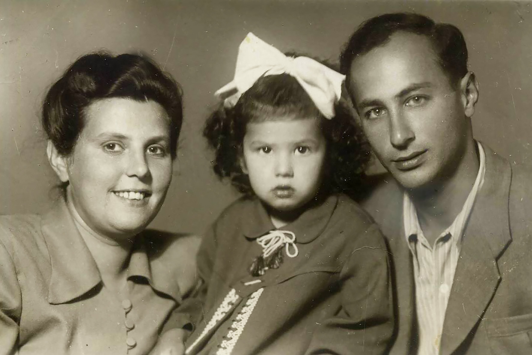 После Гражданской войны настал черёд деда поколесить по стране. На станции Земцы в 1925 г. он нашёл свою судьбу: красавица-смуглянка Полина, дочь местного лесозаготовщика Михаила Давидовича Магаршака, стала его женой. А через два года, в 1927 г. в городе Великие Луки (ныне Псковской области), куда деда «перебросили по работе», у супружеской пары родился их единственный ребёнок – мой отец, названный в честь деда по матери Микой и записанный в документах как Моисей Львович Пудалов. Помню, я недоумевал: почему отец, которого все зовут либо «Миша», либо «Мика», по паспорту «Моисей»? Но старшие объяснили: оказывается, у евреев не принято давать новорождённому имя живого родственника, вот и пришлось изменить имя в свидетельстве о рождении. Сохранилась парадная фотография: семья Пудаловых – мои прадед и прабабка, их дочери и единственный сын (мой дед), в своих лучших одеждах запечатлены на память на восьмой день после рождения Мики, снимок по случаю «брит-мила».